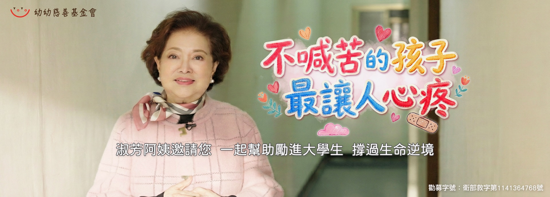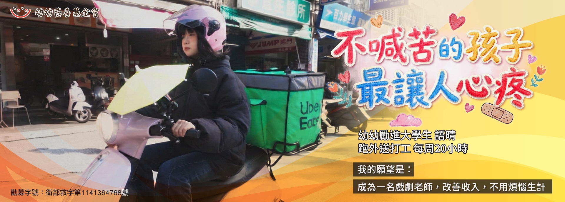 幼幼基金會幫清寒大學生募集助學金。中興大學的許雅勛,來自中低收單親家庭,雅勛的媽媽說自己學歷不高,用苦力掙錢栽培女兒上大學,這一路很感謝幼幼基金會的捐款人,給予雅勛助學金,希望有朝一日,母女倆可以手心向下,回饋社會。